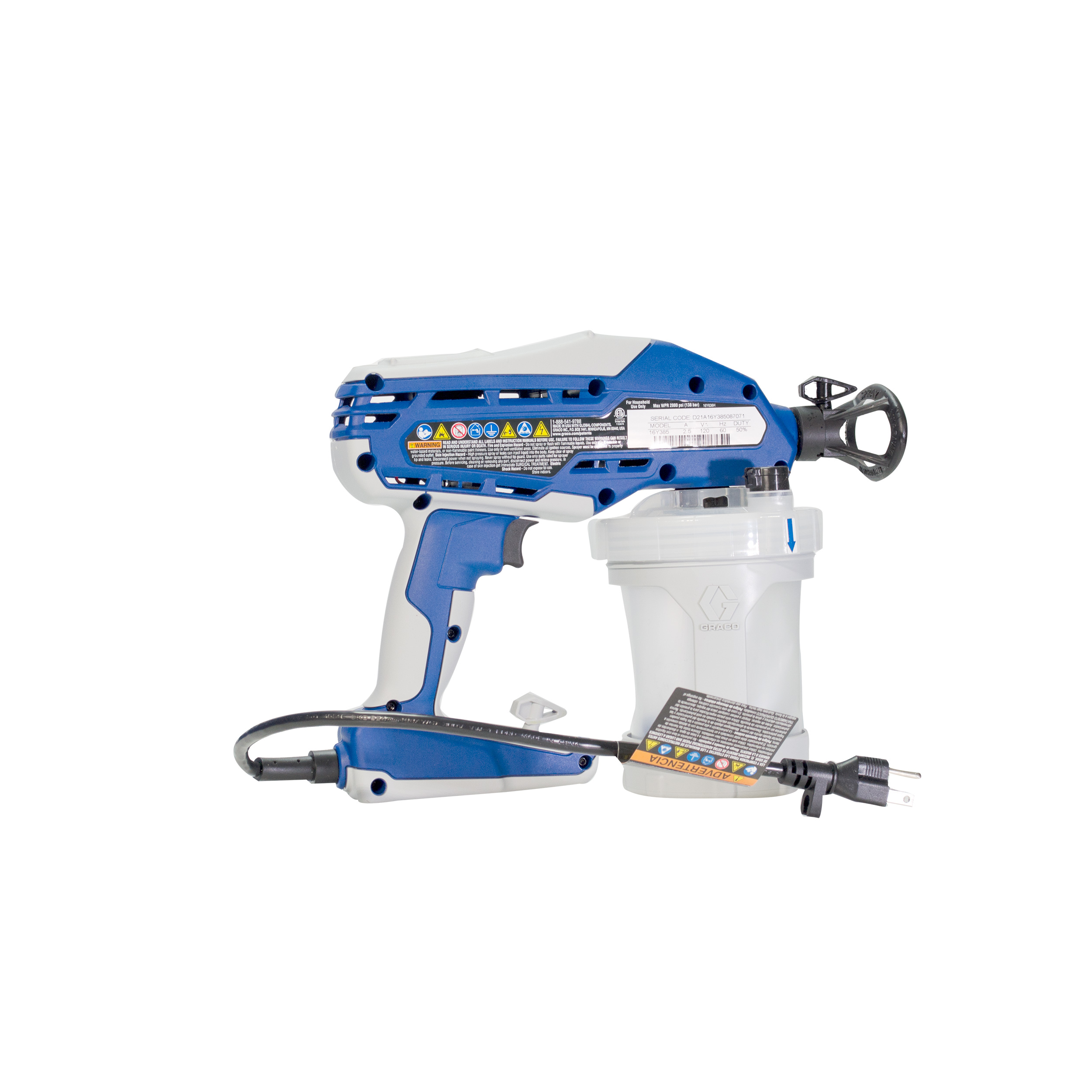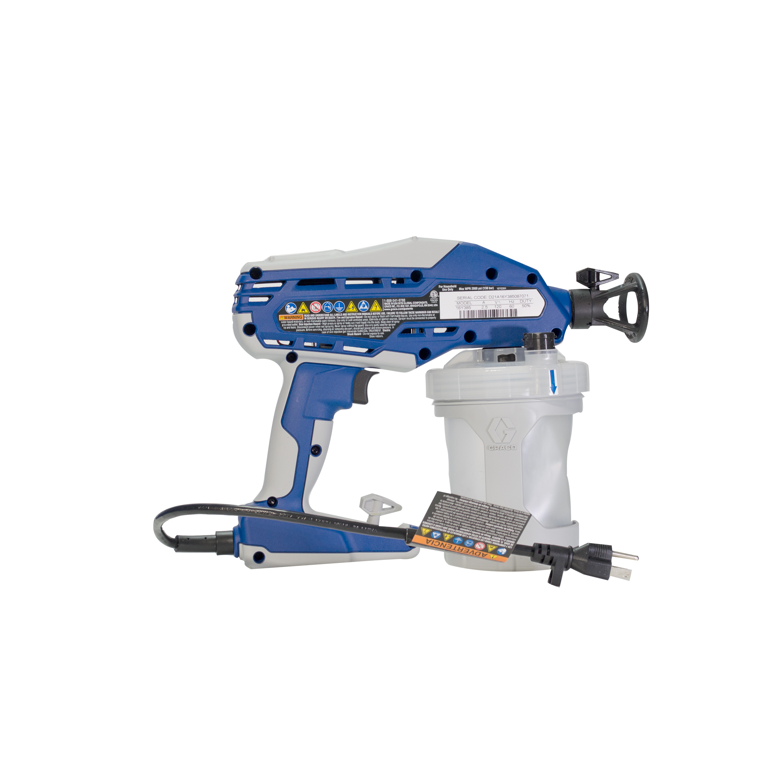- Bomba de pistón de acero inoxidable – Ofrece energía de alta presión para rociar pinturas no satinadas